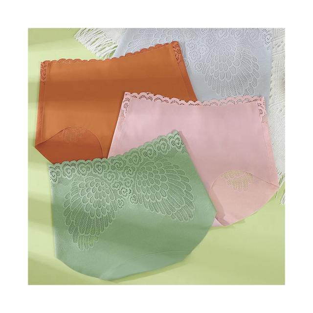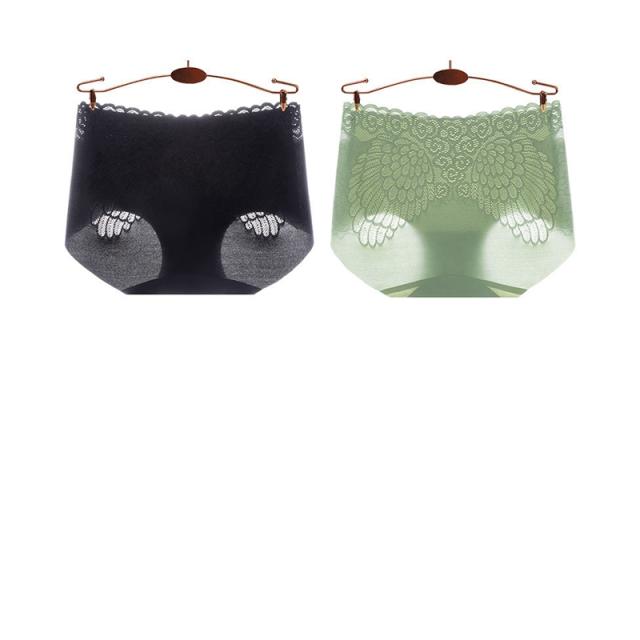 送料無料 2枚セット シームレスショーツ シ ョーツ レディース パンツ バック総レース アイスシルク生地 パンツ 下着 翼柄 超盛 美尻