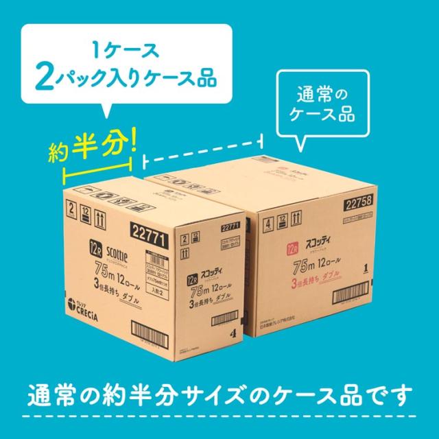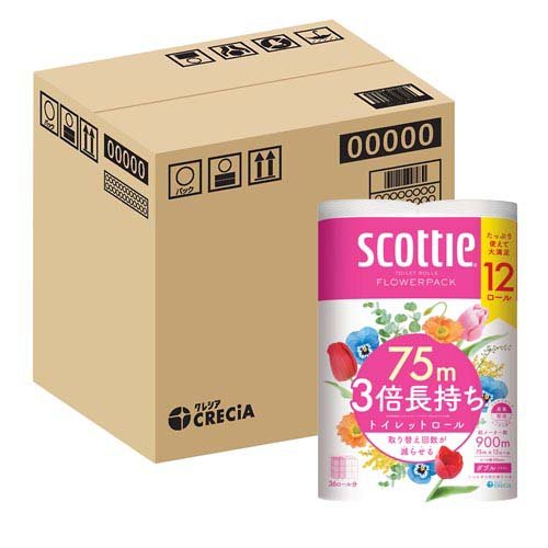スコッティ フラワーパック 3倍長持ち トイレットペーパー ダブル ハーフケース(12ロール×2袋入(1個75m))[トイレットペーパー ダブル]