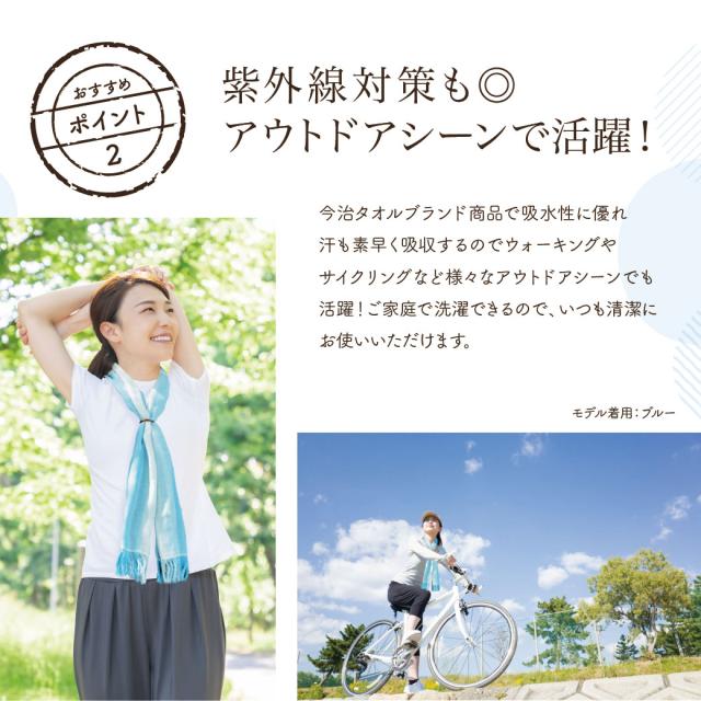 今治タオルブランド商品で吸水性に優れ汗も素早く吸収するので、ウォーキングやサイクリングなど様々なアウトドアシーンでも活躍。