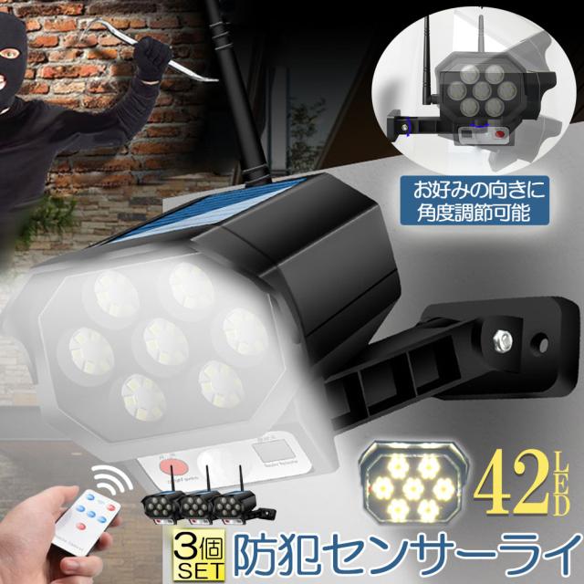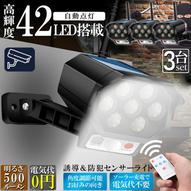 ソーラーライト 防犯カメラ型 防犯ライト 3個セット 屋外 led ダミーカメラ ダミーカメラ 42LED センサーライト 屋外照明 人感センサーライト 3つ点灯モード 防水 防塵 電源不要 自動夜間点灯 人感検知 ダミーカメラ型ライト 壁掛け庭先 玄関