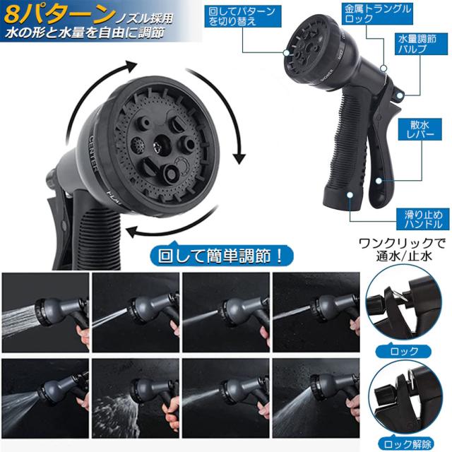 【幅広く使えます】:散水ノズルは8パターンの散水機能を搭載し、マンションや一戸建てのご使用に適しています。庭、ベランダやマンションの掃除、植物への水まき、お子様のプールへの給水、洗車などに幅広く使えます。
