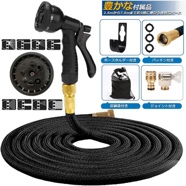【3倍に伸びる】:収納時5m、最大15m、ホースを蛇口に取り付けてると、5mから15mまでホースが水圧で約3倍に伸びる便利なホース。(水圧によって最大限まで伸びれない場合があります)【超軽量素材】:使用しない時は、ホースの重量はわずか880gです。従来のゴムホースのような面倒くさい収納法に対し、伸縮ホースは超軽量素材を利用して全然重くないですから、誰でも楽にご収納いただけます。