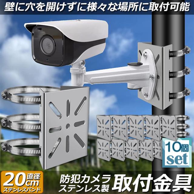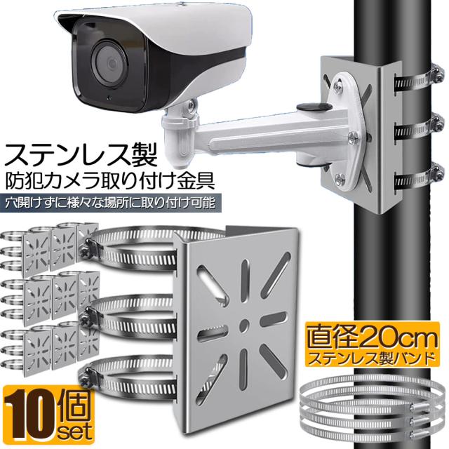 防犯カメラ ポール 取付金具 10個セット カメラ ブラケット スタンド ステンレス製 ハウジング 穴開け ビス止め 不要 監視カメラ ダミー ハウジング ブラケット円柱 角柱 屋外 設置 すぐ使える