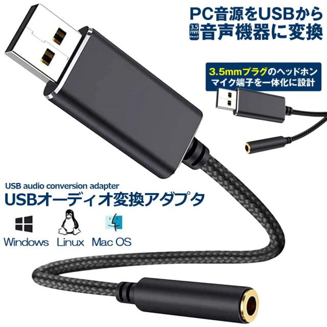USB イヤホン 変換 アダプタ 3.5mm プラグ オーディオ ケーブル USB外付け サウンドカード 3極 TRS 4極 マイク機能対応 ミニジャック ノート パソコン PC マイク 簡単 接続 Windows Mac Linux