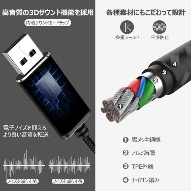 サウンドカードやドライバは不要で、USBポートに差し込むだけの 簡単接続です。 内部にチップセット付きなのでお使いの時 や熱を出る状況もある可能性があり是非ご心配なく安心して下さい。 ※ps3、XBOXoneには使用不可です。 ※beatsイヤホンには対応です。