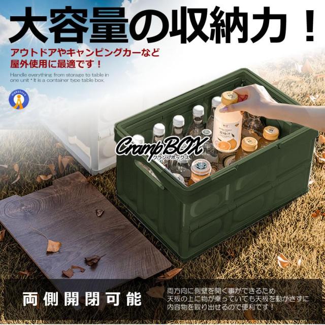 クランプテーブル 収納BOX 折り畳み キャンプ 30L コンテナボックス テーブル ウッド 側面開閉可能 アウトドア 車 キャンプ アウトドア らくらく CRANPTABLE-GR