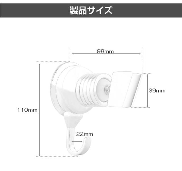 | 商品名 | シャワーヘッドホルダー 両面テープ固定式 フック付 ホワイト |