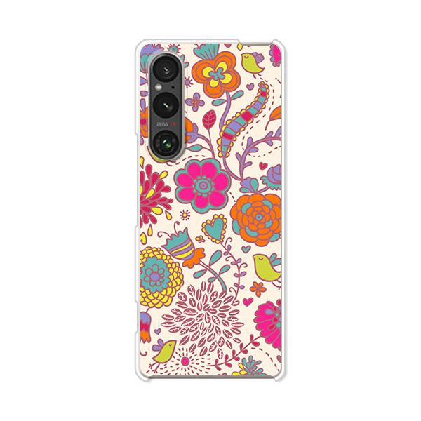 Xperia 1 V SOG10 SO-51D エクスペリア1V ケース ハードケース 花×小鳥 PCクリア スマホケース ハードカバー