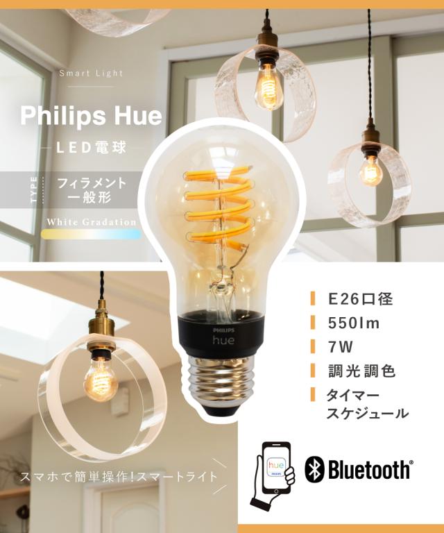 【Philips Hue】 LED電球 スマートライト LED 電球 E26 7W フィラメント 調光 調色 電球色 白色 スマホ Bluetooth Wi-Fi 日本正規品 アレクサ対応 省エネ ヴィンテージ スパイラル デザイン 照明 おしゃれ ライト Philips Hue フィリップスヒュー ホワイトグラデーション