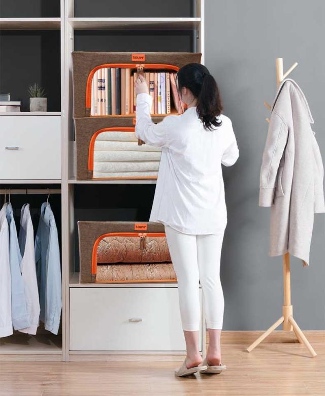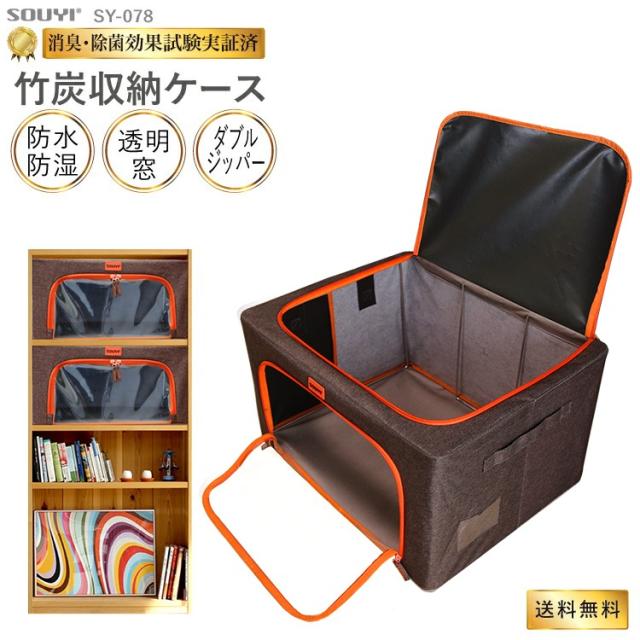 折りたためる防水竹炭収納BOX (Mサイズ) SY-078-M /消臭/撥水/押入れ収納/小物入れ/洋服収納/