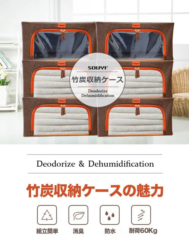 上から入れて横から出せる、脱臭効果のある竹炭収納ケース