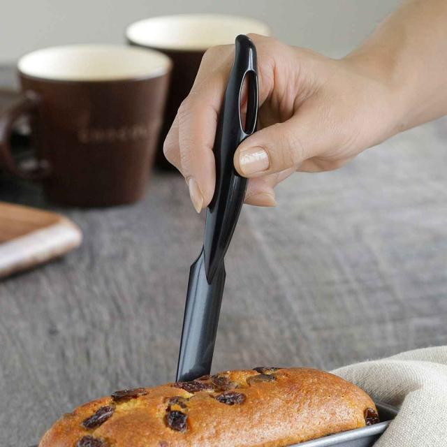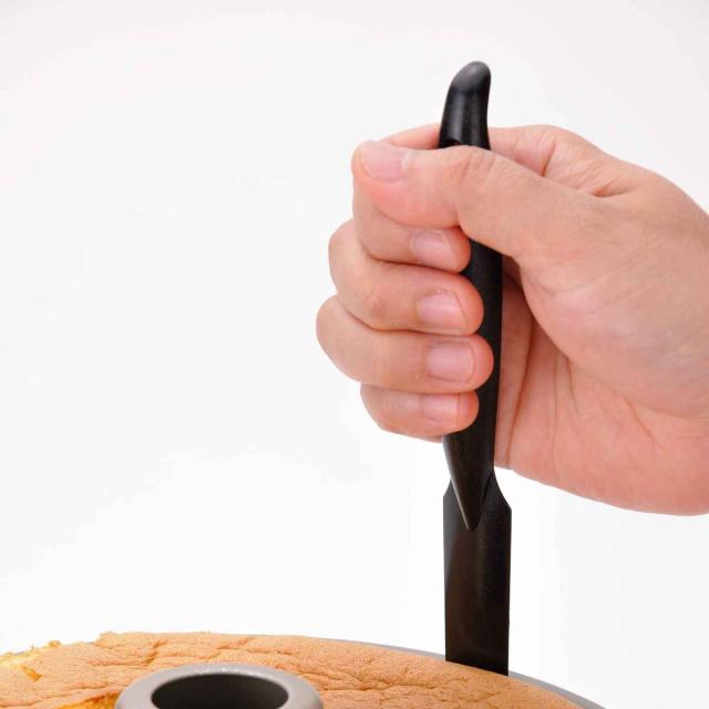 極薄の先端と弾力のある素材で型にすっと入り、焼きあがったシフォンケーキを傷つけません。
