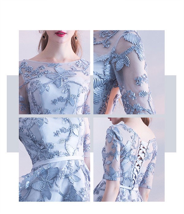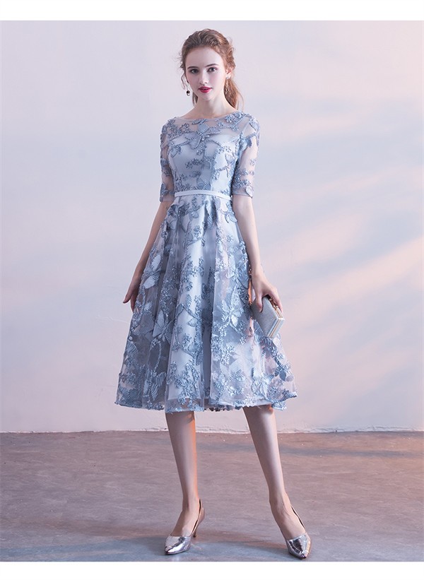 パーテイードレス 膝丈ワンピース ミモレ丈ドレス 着痩せ 大きいサイズ 発表会 演奏会 二次会 半袖 膝丈 編み上げ エレガント 花嫁 結婚式 二次会 披露宴 フォーマルドレス グレー S M L 2L 3L 4L da006c6c6zr