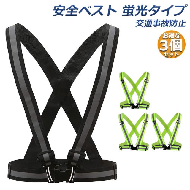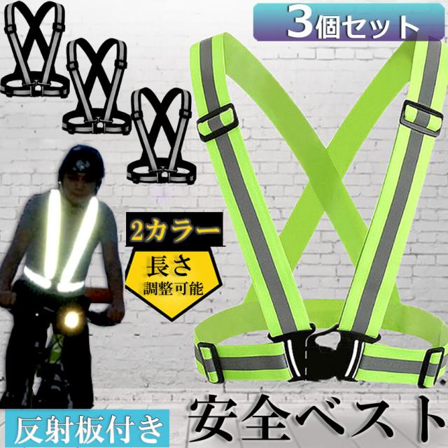 安全ベスト 蛍光ベルト反射板付き 3個セット 蛍光タスキ ランニング 蛍光 夜間 ジョギング ウォーキング 夜 夜間 反射 マラソン スポーツ 大人 子ども 交通事故 防止