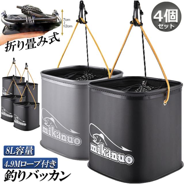 釣り バケツ バッカン 水汲み みずくみバケツ 釣り 4個セット 折りたたみ バケツ 8L 魚が逃げない ロープ EVA 海釣り 生かしバケツ 釣り 水くみバケツ アウトドア コンパクト