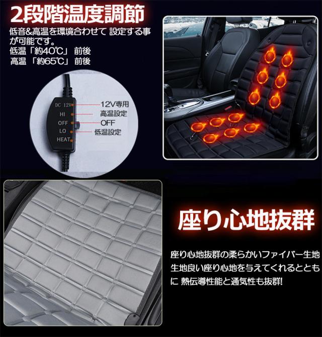 カーシート ヒーター ホットカーシート 12v車用 シートヒーター 車用 即暖 シートヒーター シートカバー シガー 電源 12V シガーソケット 座席ヒートクッション 取付簡単 温度2段回調整 運転席 助手席 防寒対策 暖房 幅広い車種に対応