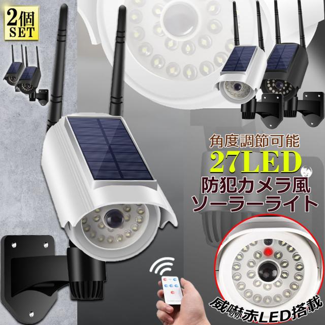 ソーラーライト 屋外 led 2個セット ダミーカメラ 防犯カメラ型 ダミーカメラ 27LED センサーライト 屋外照明 人感センサーライト 3つ点灯モード IP65防水 防塵 電源不要 防犯カメラ型 自動夜間点灯 人感検知 ダミーカメラ型ライト 壁掛け庭