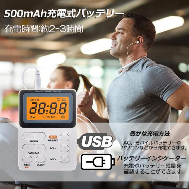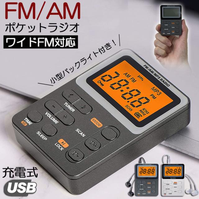 ポケット ラジオ ポータブル ワイドFM FM AM 対応 充電式 ミニーラジオ 小型ラジオ 携帯ラジオ 通勤ラジオ LCD 液晶 画面 ディスプレー 高感度 ロック機能搭載 ポータブル 防災ラジオ イヤホン付き 小型 持ち運び 軽量 携帯 便利 ポケットラジオ