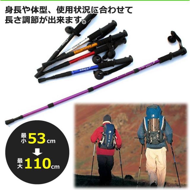 【アルミ製&超軽量】超軽量アルミニウム合金製のシャフトを採用。軽さと強さを兼ね備え 耐衝撃性に優れた素材です。製品の重量は1本わずか約350g、長時間のトレッキングでも 疲れません。