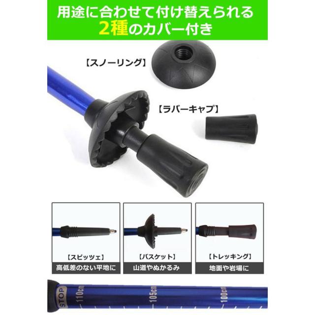 【多数の地形に適す】トレッキングポールの先端が上質なタングステン合金を採用しています、高い硬さ、耐磨耗、良い強さと靱性。着脱可能な岩場、湿地、雪道、アスファルト道路専用のラバースリーブを付いて、いろいろな環境に利用できます。