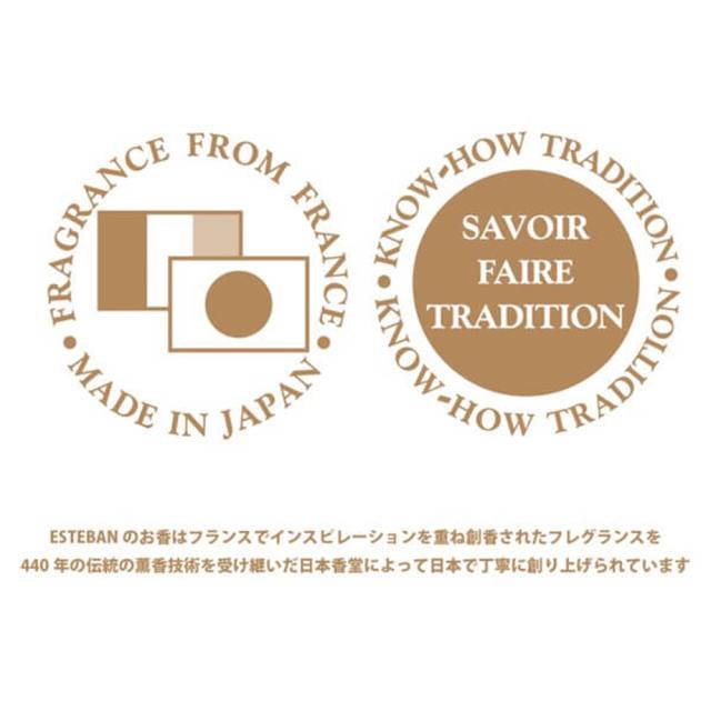 ESTEBANのお香はフランスでインスピレーションを重ね創香されたフレグランスを、440年の伝統の薫香技術を受け継いだ日本香堂によって日本で丁寧に創り上げられています。