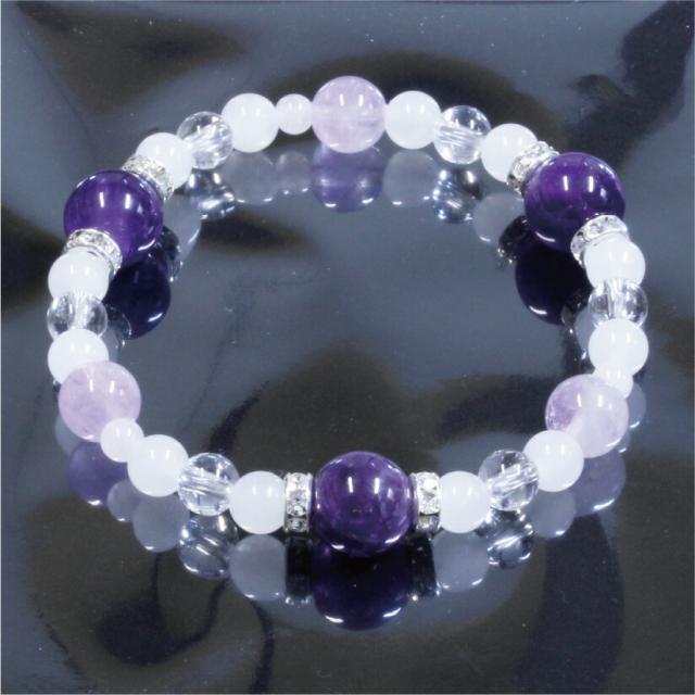 | 使用石 | アメジスト10mm、ラベンダーアメジスト8mm、ホワイトクォーツァイト6mm、水晶6mm、ローズクォーツ4mm、ロンデル |