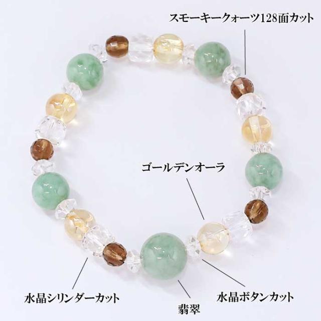 【送料無料】健康運 ブレスレット ST-2399 パワーストーン 浄化 開運 天然石 翡翠 ゴールデンオーラ 水晶 スモーキークォーツ