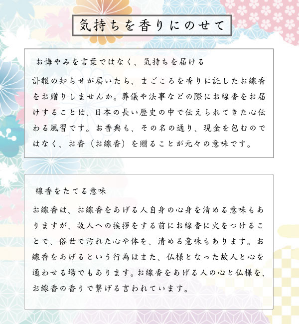 ・葬儀や法事にご供養のお線香をお届けするのは、長い歴史の中で伝承されて来た風習です。