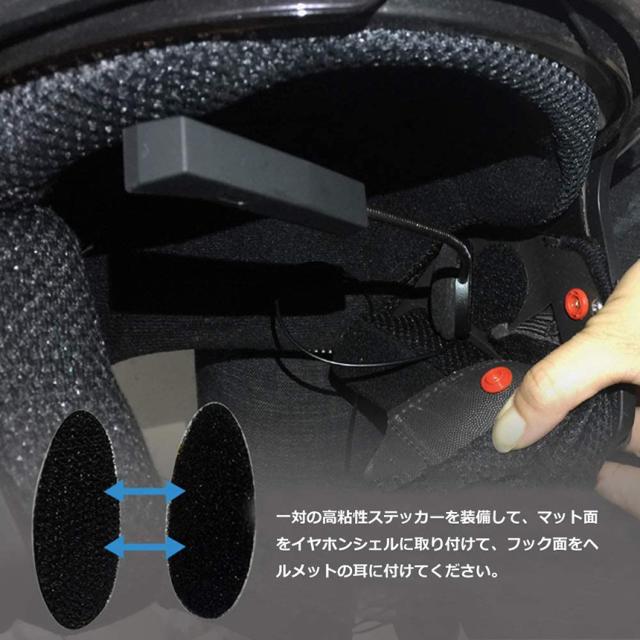 イヤホンはマジックテープでヘルメットに貼り付けるタイプです。