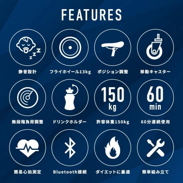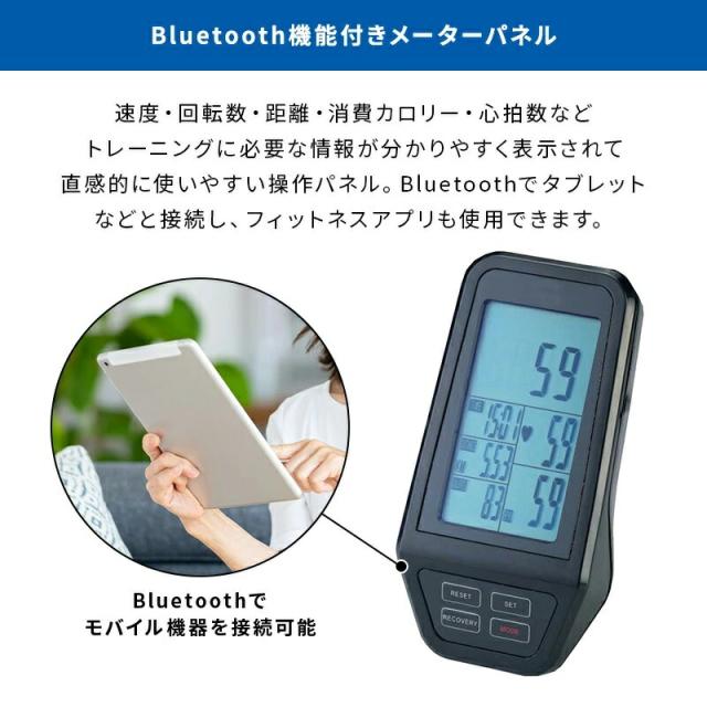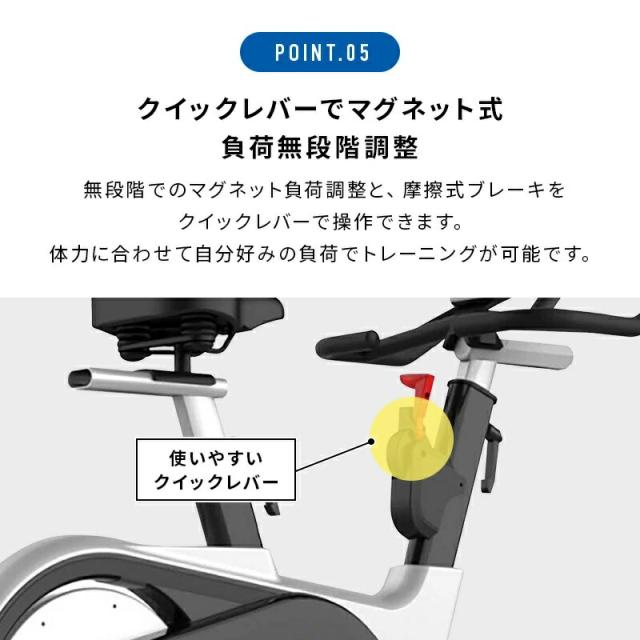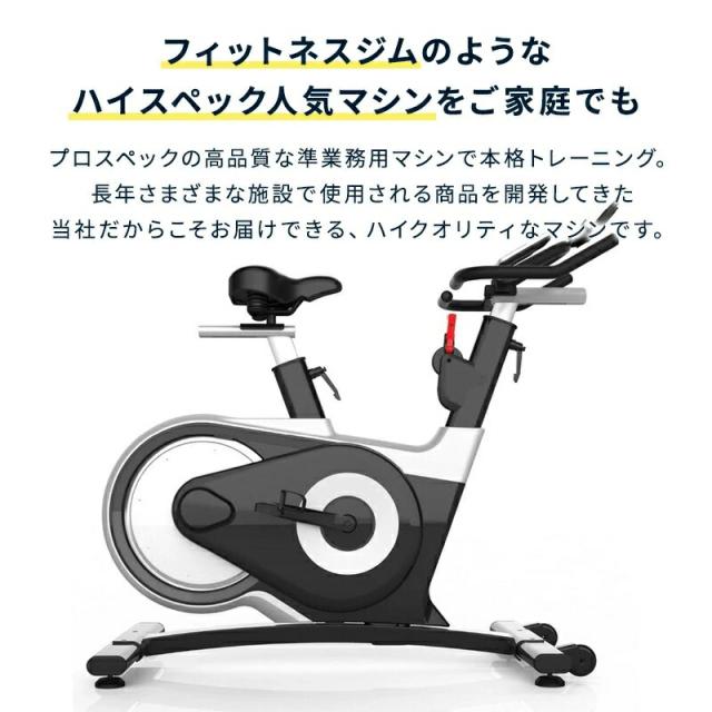 商品詳細: 準業務用スピンバイクです。13kg大型フライホィールとハンドル上下・前後そしてシート前後・上下の調節ができる為、最適なポジションでフィットネスができます。 また、パネルにはBluetooth接続も可能です。