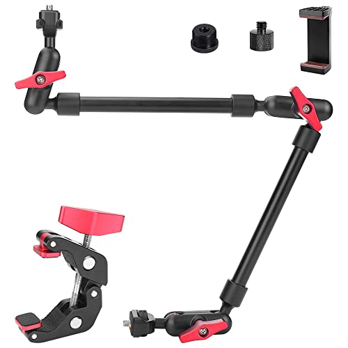 マジックアーム スーパークランプ 22インチ(57cm) カメラアーム フレキシブル 撮影クランプ カメラスタンド ボールヘッドアーム 360度回転 1/4インチネジ スマホクリップ&ネジ変換アダプター付 アームスタンド 俯瞰撮影 マホス