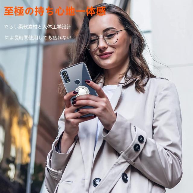 背面部分にフィンガーリングがついています。スタンド機能で縦置き・横置きはもちろん、指を引っ掛けた状態でのスマホ操作で落下防止に役立ちます。360度回転可能、180角度調節が可能です。