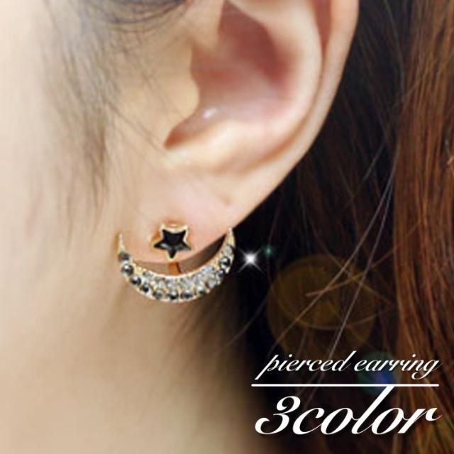 ピアス スタッドピアス バックキャッチピアス レディース 女性 アクセサリー 月 星 スター ムーン ラインストーン キラキラ