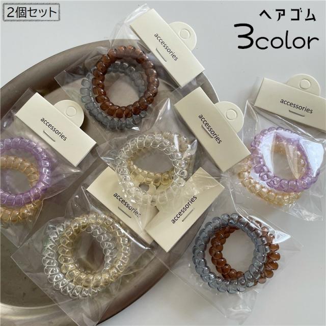 ヘアゴム 2本セット スプリングゴム 髪ゴム レディース 女性 ヘアアクセサリー まとめ髪 ヘアアレンジ クリア 透明 かわいい