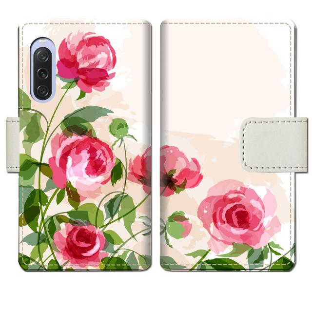 Xperia 10 V SOG11 SO-52D A302SO XQ-DC44 手帳型 スマホケース 手帳ケース 手帳カバー【薔薇絵画デザイン】