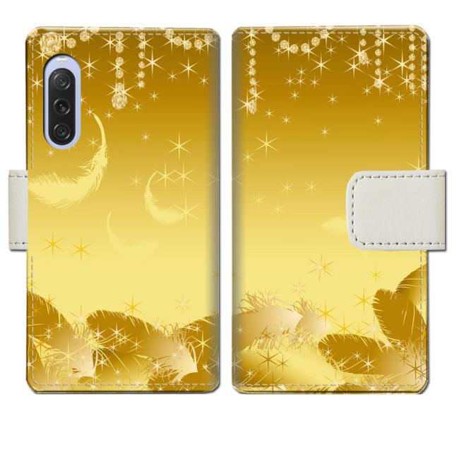 Xperia 10 V SOG11 SO-52D A302SO XQ-DC44 手帳型 スマホケース 手帳ケース 手帳カバー【セラフィックフェザーデザイン】