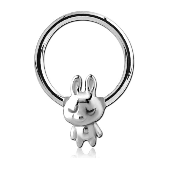 14ゲージのキャプティブビーズリングにウサギのキャッチをセットしたボディピアス。