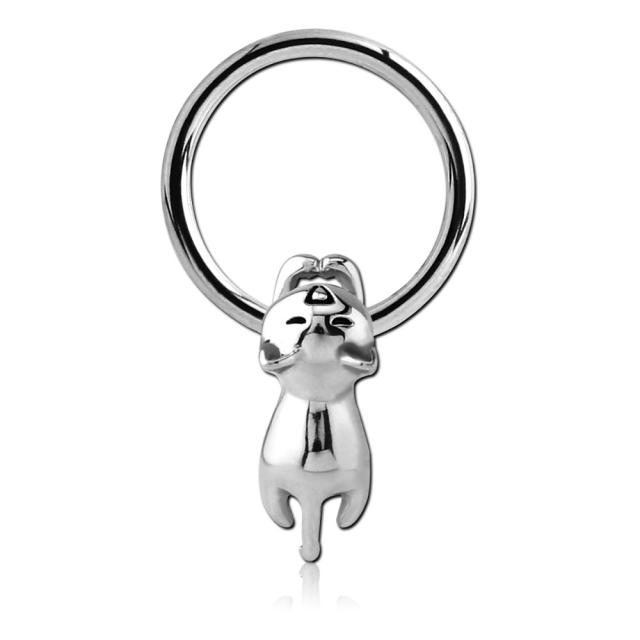 14ゲージのキャプティブビーズリングに伏せ猫のキャッチをセットしたボディピアス。