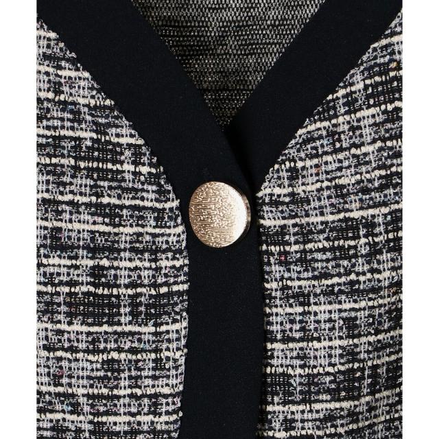 カットソー素材で仕立てた今の季節にぴったりのツイードカーディガン。