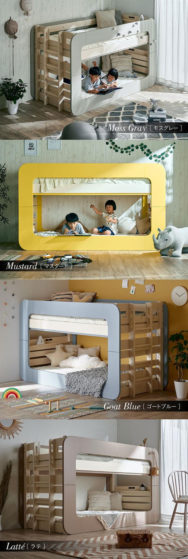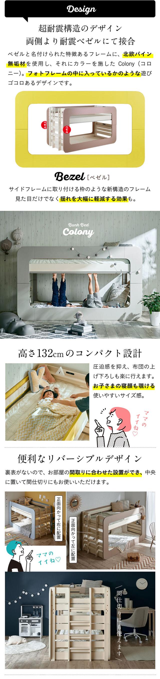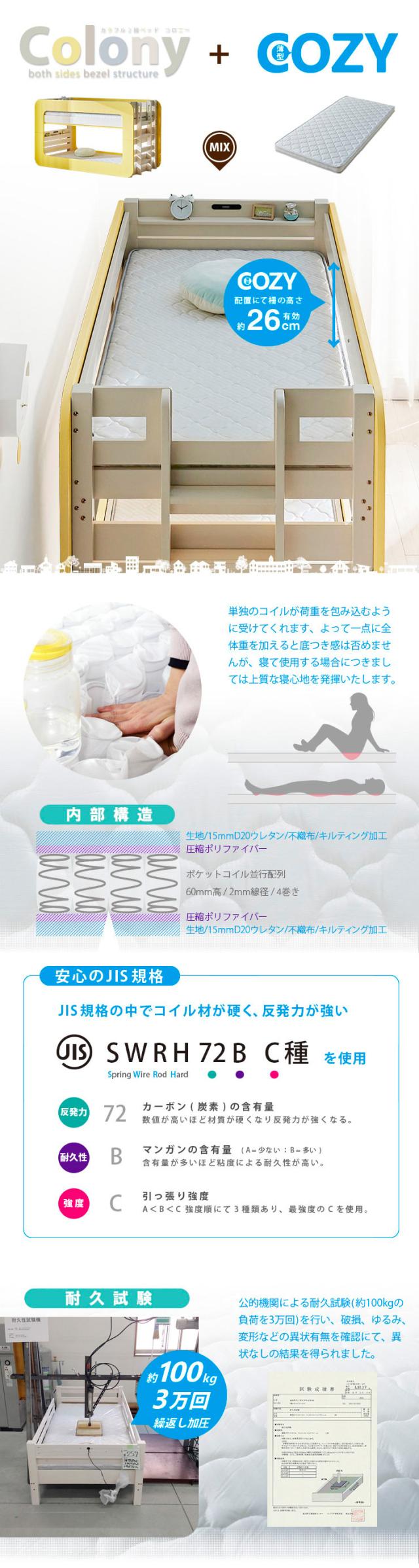 【マットレス付き】超耐震構造 宮付き 二段ベッド 2段ベッド Colony(コロニー) 5色対応 マットレスセット マット付き マットセット ロータイプ 分割 分離 子供 大人用 コンパクト 耐震仕様 木製 LED照明 おしゃれ
