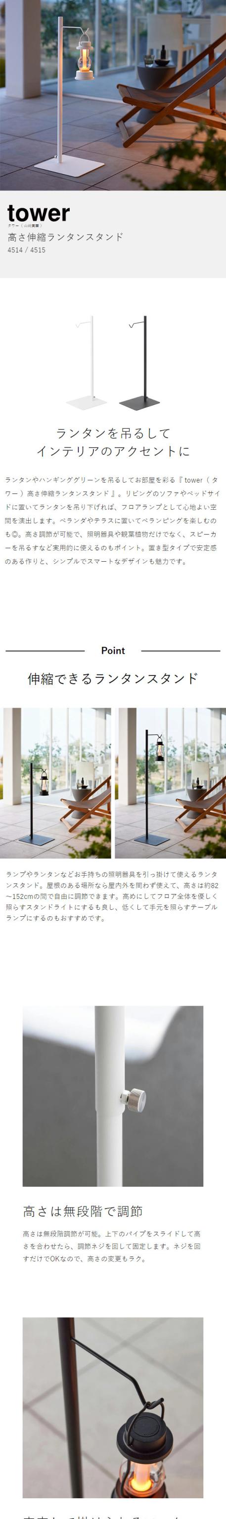 [ 高さ伸縮ランタンスタンド タワー ]山崎実業 tower ランタンスタンド ランタン スタンド ランタンハンガー LEDランタン プランターハンガー 伸縮 間接照明 北欧 おしゃれ モノトーン yamazaki ブラック ホワイト 4514 4515【送料無料】