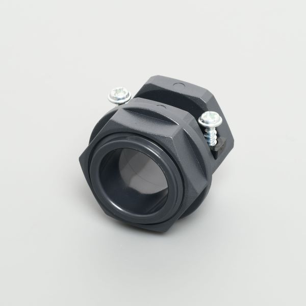 壁やボックス、装置などから電線を引き出す際に、電線取り出し口に取り付けて電線を締め付けることによって、電線を固定することができるケーブルグランドです。電線を止めねじで固定するグリップを採用したことにより、しっかりとした固定が可能です。