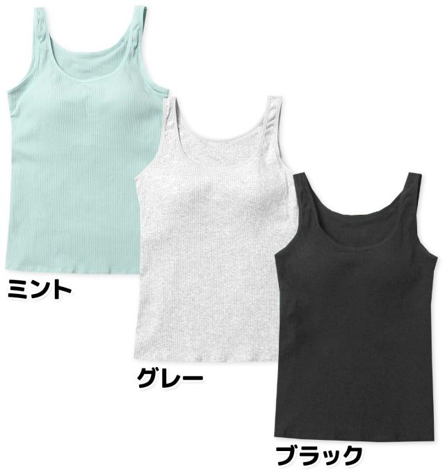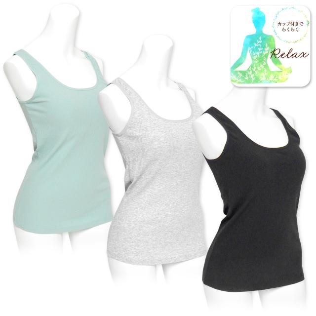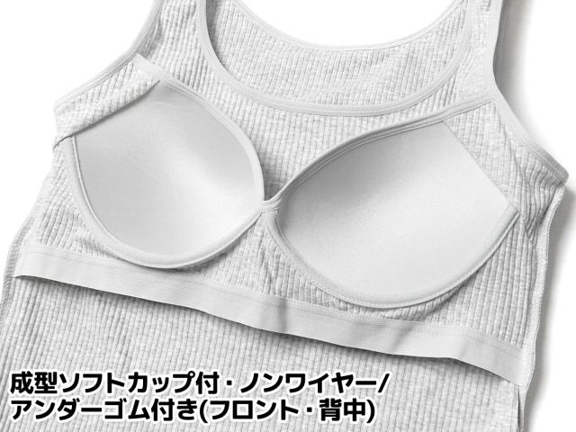 【送料無料】婦人 レディース リブ素材 ブラトップタンク 綿混 カップ付きでらくらく アンダーゴム付き 下着 yg-2126【メール便対応】