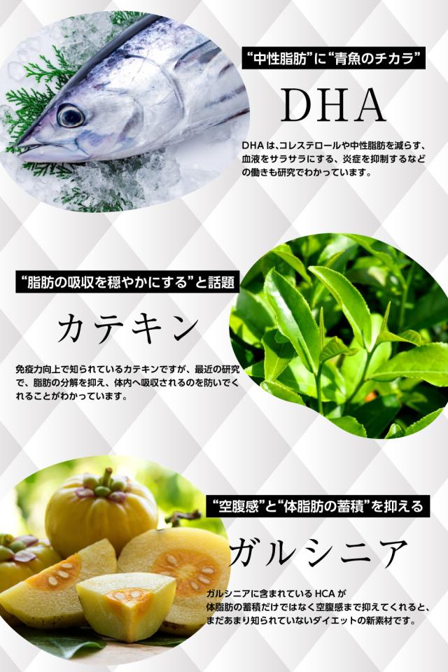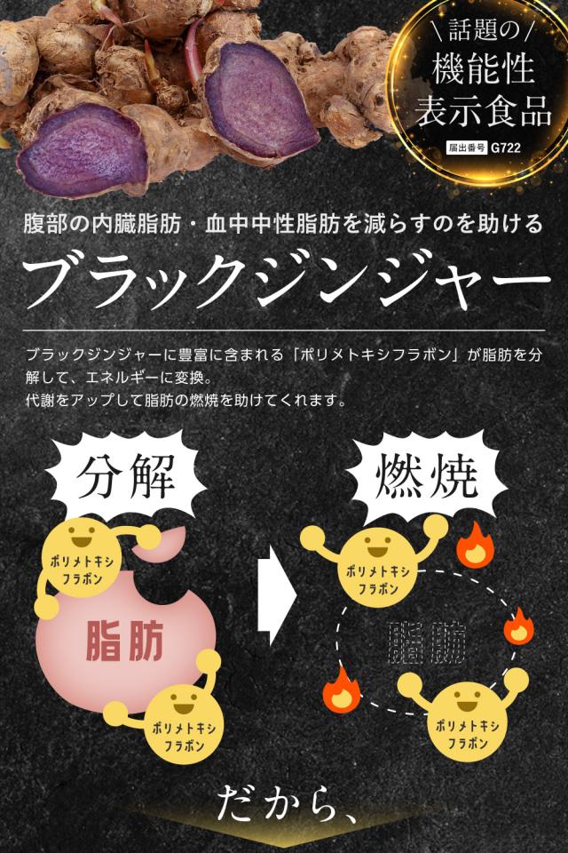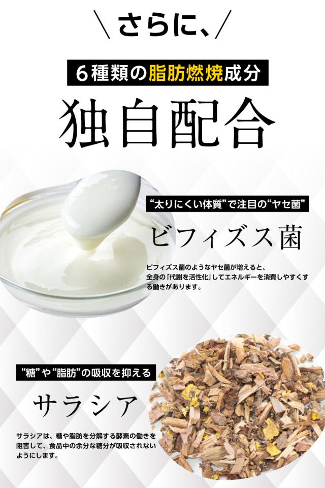 原材料:ブラックジンジャー、ビフィズス菌、ザクロ、カテキン、サラシア、DHA