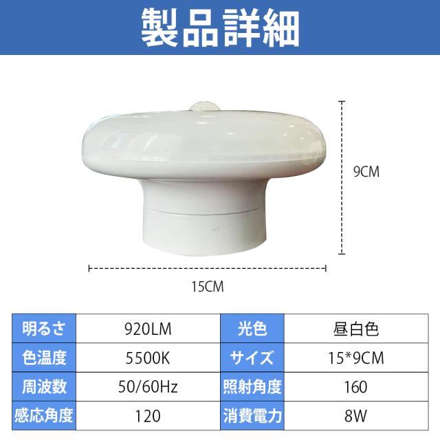 品名:高感度人感センサー搭載LED小型シーリングライトサイズ:約φ15*10cm、消費電力:8w(20W型相当)、周波数:50/60Hz、入力電圧:AC100V、非調光対応です。設計寿命は40000時間まであります。一日10時間を使うと、約8年持ちできます。【データ統計:日常の使う時間によってライト寿命と決め込んおりますので、データはご参考するのみでございます。】1年保証:ご購入日より1年間の保証を提供いたします。ミニサイズだから、コンパクトで場所を取らないので洗面所や台所や廊下や階段やトイレなどどこでも最適です。簡単操作できるので、幅広くお使い頂けます。