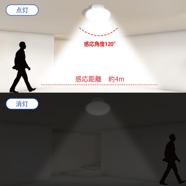 【高感度人感センサー搭載】感知距離は約3m-4mです。感知範囲にいる間、ライトは感知受け続けてずっと点灯します。体は離れてから、30秒ぐらい自動消灯になります