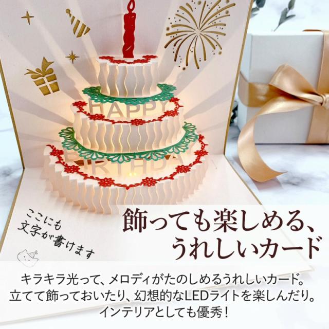 バースデーカード 音が鳴る 光る 誕生日 立体 音楽 メロディ おしゃれ イラスト 人気 かわいい ケーキ メッセージカード カード用紙 アルバム 二つ折り プレゼント 手書き 手作り 書き方 メッセージ 簡単 大人向け 子供 男女兼用 メロディーカード agesugi_snk