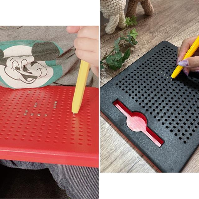 付属のペンで盤面をなぞると、磁石の力でボードに銀色のボールがぱちっと引き上がります◎
