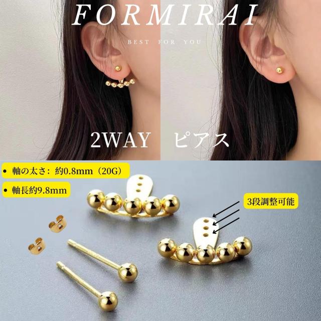2WAY仕様、サージカルステンレス316Lピアス。軸の太さ:約0.8mm(20G)、軸長約9.8mm。 【シーン】