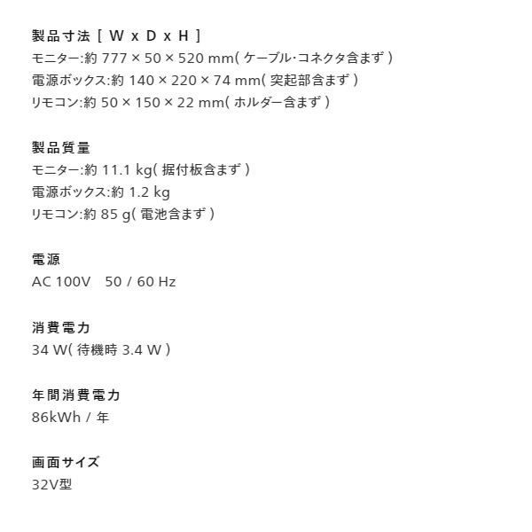 モニター:約 11.1 kg( 据付板含まず )